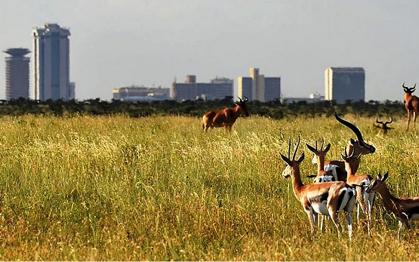 A short drive out of Nairobi’s central business district is the Nairobi National Park. Wide open grass plains and backdrop of the city scra